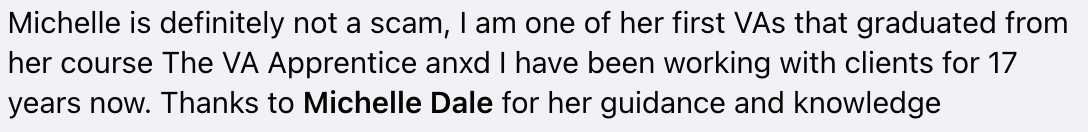 We have some GREAT people in the industry who have done wonderful things for fellow VA's, but just be aware, that all that glitters is not gold - some people on the internet have the 'appearance' of being genuine, authentic, successful VA Experts, trainers, coaches and mentors, but when someone has to resort to things like that to grow their business, what version of success is that really? Instead, go by the results and feedback from people, from the valuable content they put out, not from the shady messages that slide into your DM's.