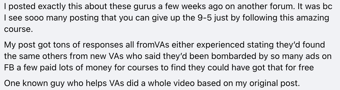 Which in turn, got some comments from Virtual Assistants generally about how they felt about this...