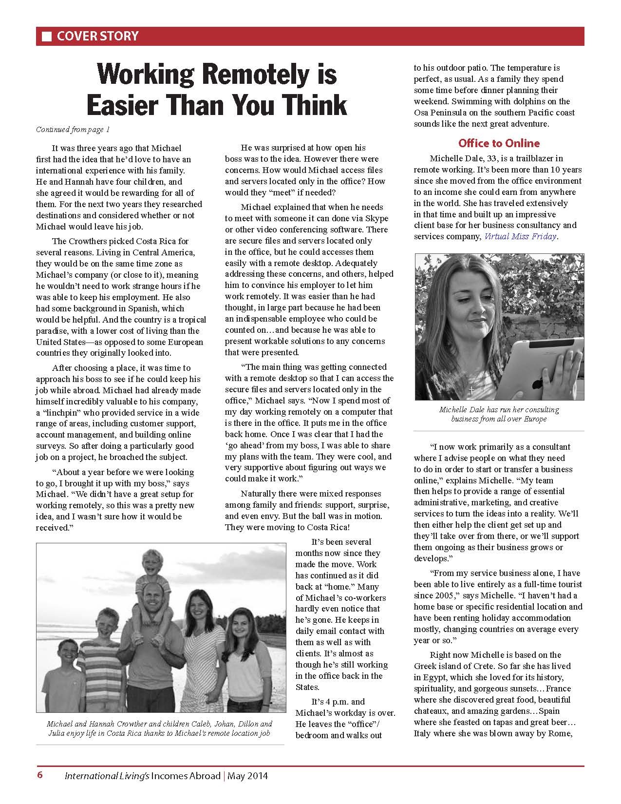International Living magazine says... "Michelle Dale, 33, is a trailblazer in remote working. It’s been more than 10 years since she moved from the office environment to an income she could earn from anywhere in the world. She has traveled extensively in that time and built up an impressive client base for her business consultancy and services company, Virtual Miss Friday."
